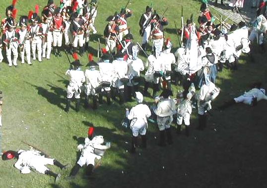 Formaciones en cuadro y en línea durante la recreación de una batalla.