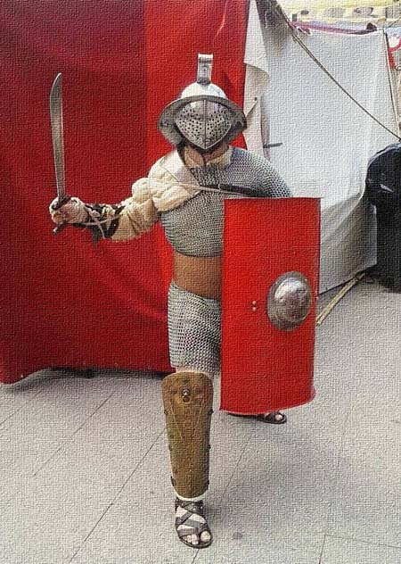 Con el grupo de “GLADIATORES SUCRONENSIS VICTRIX”, especializado en los clásicos combates por parejas en la arena del Circo Romano.