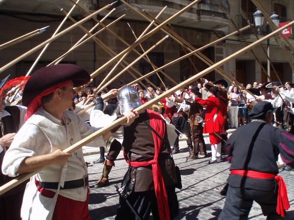 Picas caladas contra caballería. A la derecha,