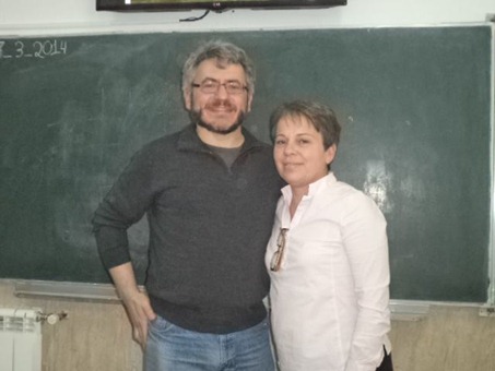 José Ramón Cumplido junto a Amparo Suarez, profesora del centro